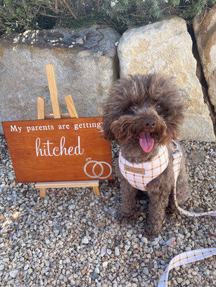 To put my service simply; I will collect your furbaby from your chosen location and safely Chaperone them to your Wedding. We will be ready to greet guests as they arrive and I will help out with any involvement you'd like them to have within your ceremony.